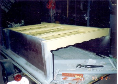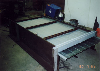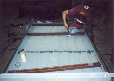 The enclosed photos were taken during the bed bottom replacement of a 1946 GMC ¾ ton about 1990. The owner is Ed O'Reilly of Norwalk, N.Y. Ed would not compromise on the originality and thus a new bed bottom is shown being installed. He states it is not any more difficult than adding wood planks and strips. The right angle edge of the bottom welds to the bed sides just like the more conventional corner bed strips of a wood bed.