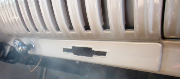 This blank-out plate and its two special clips has become very rare in recent years. They are not being reproduced. The enclosed photos show an original painted plate. The Chevrolet unit is the interior cab pearl beige color with a stamped bow-tie in black. GMC chose to not add their logo. These plates are just like Chevrolet except have a smooth surface with no trade letters.