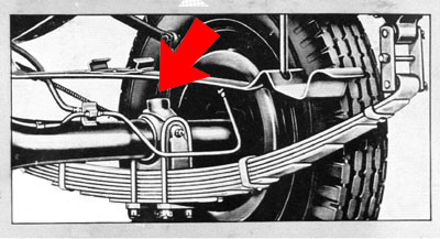An excellent example of this is the rear ½ ton axle bumper. The design was used from 1929 through 1946 on Chevrolet and GMC ½ tons. A rubber bumper is held down on the rear axle housing by a metal cover with two ears. These ears are firmly secured by the two u-bolts that connect the leaf spring to the round axle housing. If the truck is overloaded or the shock absorbers are worn, the rubber bumper prevents metal to metal contact between the axle and frame rail.