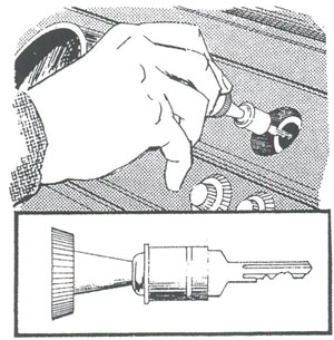 Need a good spot for the spare key? Take the workings out of the cigarette lighter, fill it with epoxy glue and stick the key handle into it. Disconnect the wires to the lighter and remove the back of the socket. The knob now keeps the key handy, but still looks like a lighter, fooling potential thieves but keeping the key handy.