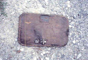 Bottom side of wood toolbox lid.