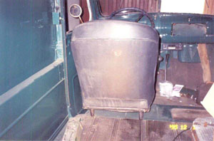 In this case, it was the interior that was the attention getter. Yes, the inside had been repainted. That was the easy part! It is the seat, bedwood, and storage compartment lid that are so pure. The seat is not only 1941, but the upholstery is very important. It is the same as when it came off the assembly line. Even the threads are still secured well to the vinyl panels. A unique small storage compartment in the floor to the right of the seat has a wood lid! Could this be due to cost cutting on a lower production work vehicle? Yes, it is the correct cover!