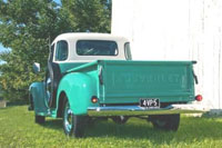 The photos show the finished product. Pat has a new nearly 60 year old Chevrolet Ocean Green Deluxe ½ ton. Of course, they always take much longer to restore that we expect. This took six years of evenings (2,200 hours) to complete!