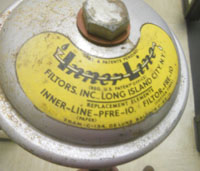 An Inner-Line oil filter from Long Island, New York! Rarely seen today but a popular early aftermarket option. It secures to the engine block after removing the oil distribution cover. No oil lines. No moving the horn forward to make room for the intake manifold mounted oil canister.