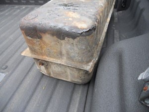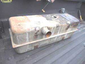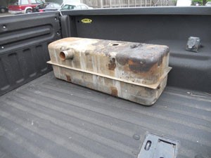 On pickups the 18 gallon tank sets comfortably and safely within the seat riser and below the seat cushion. Over a million of these pickups were sold during this production period.