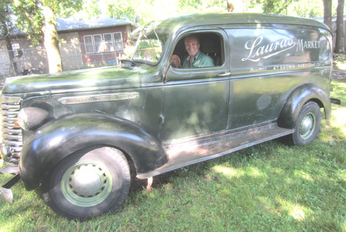 Paul, a local resident and old car enthusiast, had only heard rumors of the stored delivery panel truck. One day he found a family member with access to the garage and he asked if he could see the panel truck. He could not believe his eyes! It was just like when parked there in the 1950’s. The store logos were still readable on the sides and a few unopened grocery items remained inside undelivered. The log book in the glove box showed the last delivery in 1951 as well as addresses of many regular customers in the neighborhood.