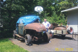 The truck is a 1951 Chevrolet 3/4 ton pickup. The owners are Richard and Dolores Diestler of Schofield, Wisconsin. Their pickup came from a North Dakota farm about 3 years ago and Richard found it on a local snowmobile dealer’s lot. Richard had wanted to restore an older truck for many years. It was just finding the correct GM truck for this project. The pickup was brought to their home by a tow truck and two other trucks carried in miscellaneous parts that had been removed. Richard had been restoring antique farm tractors so there was some idea of what was ahead.