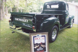 "On August 19th 2012 two childhood best friends were reunited at the Antigo Car Show. Dick Diestler and John Phillips were both born and raised in Birnamwood, WI. They spent their childhoods together playing and attending school. However, time passed and as usually happens they went their separate ways and lost touch. But their interests still remained similar. They both married, raised families and then after retirement they both began restoring trucks. Dick began restoring a 1951 Chevy and John a 1946 Chevy. When they were finished they began showing them at car shows around the state until they both ended up in Antigo together. The perfect ending to their reunion came at the awards show where they were both awarded trophies. Dick received 1st place in the 1900-1966 stock division for his 1951 Chevy 3600 and John received 1st place in the commercial one ton and overstock division for his 1946 Chevy 1-1/2 ton. They both continue to show their trucks at local car shows and more importantly they are now back in touch. Congratulations to both my Grandpa Dick and his friend John on their beautiful trucks. And thank you for proving that lasting friendship knows no limitations and that includes time." News Flash! Spoke to Richard during July 2018 at the Iola, Wi. Swap meet about this special 1951 Chevy pickup. Surprise! He stated that in Wisconsin he has received 40 trophies of 1st and 2nd place since the pickup was completed in 2012. What a compliment that so many people feel it is the top of the show! In addition, he received over 60 emails from this article asking restoration questions. What a nice following.