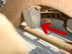 For 1954 a totally redesigned pickup bed resulted in a three inch increased depth of the bed for more load volume. Some of this increase required a lower arch in the frame rail over the axle. There would be less space here so the rubber axle bumper was changed in length and was moved to the side of the frame. See photo!