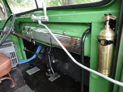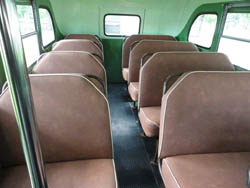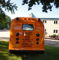 The bus has one oversize heater beside the driver and none in the back. We know the students wanted to sit up front on cold Minnesota winter mornings. It still has its original 216 six cylinder engine and 4 speed transmission. The low geared rear differential makes it all possible for its little engine.