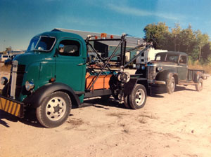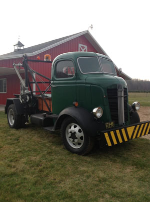 A totally restored 1937 COE 1 ½ ton on a 131” wheel base truck with attached Holmes #485 tow body from the late 1920’s. Most unusual about this Holmes #485 is the original hand crank system for lifting the cars for towing. There is no PTO on the transmission. This rig was operated by a driver with more muscle than the average person. It was an unusual operator that could crank this rig beyond 50 years old.