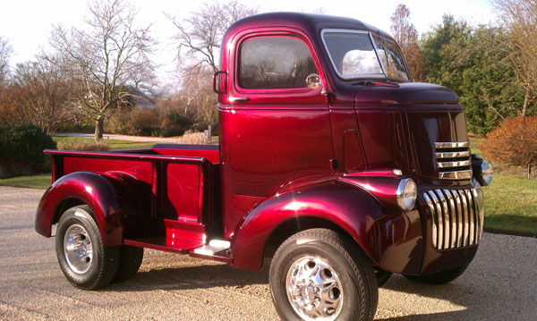Look what you can do with an early COE cab and a lot of imagination (an extra supply of money also helps). This cab sits on a 1984 Chevrolet 1 ton truck chassis, perfectly carries a 1946 ¾ ton pickup bed, and uses 1940-46 rear pickup fenders. What a nice combination. We might call it a COE pickup!