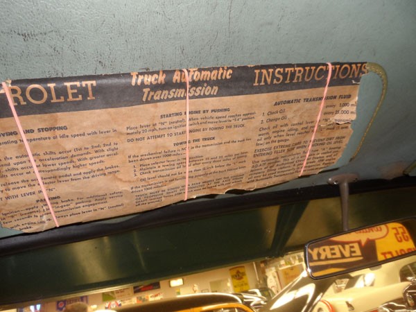 For the new owner not acquainted with a Hydramatic, a paper sheet is slid over the sun visor pad. It lists the instructions for successfully operating those types of transmissions.