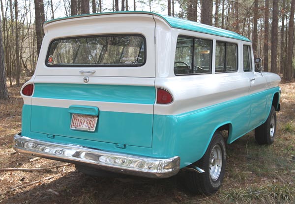 Clyde says in 2009 it had its one repaint and was kept the factory color; Mediterranean Blue and White. The upholstery now has cloth material on the three original seats. All 4 rear quarter windows slide open. It is difficult to believe the mileage is only 115,000 (about 2,200 miles per year) and records show no major mechanical repairs. The Suburban gets 10 to 12 miles per gallon, which is about usual for these large V-6 engines. No rust so no replacement body panels have been used. Thanks to Clyde, it is being kept in excellent condition and remains a part of history. An excellent example of how they were in 1961.