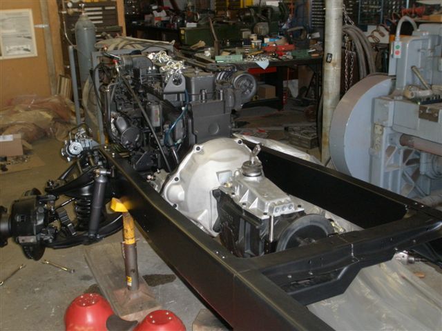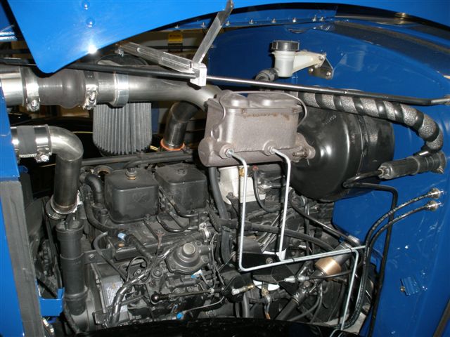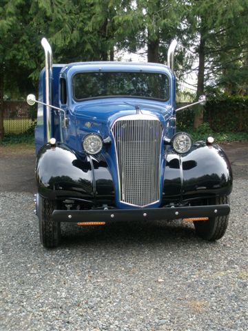 The remaining front of the 1937 frame was boxed (reinforced) to hold a Cummins V-8 5.9 diesel engine and automatic transmission from a 1993 Dodge truck. Of course, an updated front cross member was placed in the 1937 frame to hold the inner cooler, radiator, and core support. All these modifications compliment the skills of Barney Hobbs. His experience in mechanical repair, a large fully equipped home garage, lifts and owning the many specialty tools made this job successful and all being done during his retirement years.