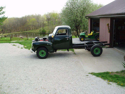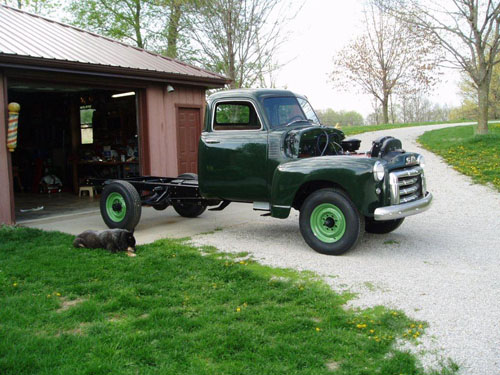An advertisement on EBay led Joe to this special pickup in Central Minnesota. It not only was what he was wanting but it had no motor or transmission. This reduced the price as well as the buying competition. Joe had a rebuilt 302 GMC six cylinder waiting at home and correct 4 speed transmissions were not difficult to find. After the sale, Joe found he was the only person that had shown an interest in the truck. He has kept it from the salvage yard and later a worse fate!