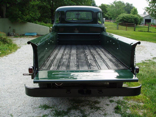 He protected the bedwood with black paint just like the factory. He was well aware that no General Motors truck would have left the factory with a smooth finish varnished bed.