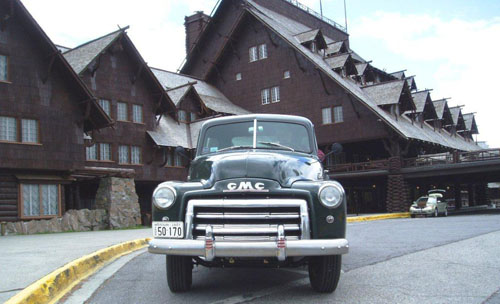 Joe and Co-pilot Bob Dyck of Vassar, Kansas (also a truck restoration enthusiast) began the drive leaving Smithville a week before the convention started. It became a vacation between friends. A few stops along the way included the South Dakota Badlands, Mount Rushmore in the Black Hills, and Yellowstone National Park. The attached photo shows Joe at Powder Pass in Wyoming with 9,666’ elevation and also parked in front of the original 100 year old hotel in Yellowstone Park.