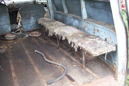 What a rare find! Don Welsh of Kansas City, Kansas is the proud new owner of a 1953 Chevrolet 1/2 ton panel truck used by the Canadian Army to transport troops. Its data plate even is stamped "Army" as well as "Made in Canada". By its appearance inside, it was used to haul soldiers and the long bench seat is on both sides of the interior. Now that's really close quarters!