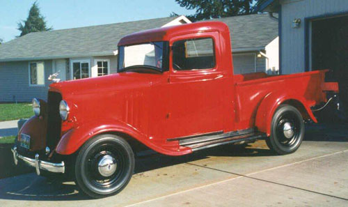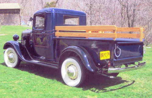 The 1935 1/2 ton pickup is kept as basic as possible to still be rated as a 1/2 ton and continues to have an actual bed with sides and a tailgate. In some countries, to lower costs, only a flat wood deck was provided on the new pickups. In the US, competition prevented the pickup from being this basic. Manufacturers were concerned not to go quite that far for fear of losing sales. The cab continued to be sheet metal nailed to a wood frame to create the body’s framework. At that time it was the less expensive method of cab construction.