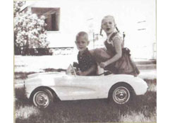 | Ray and Mildred Lambrecht’s children in a new Corvette peddle car (about 1959) | |