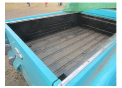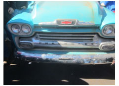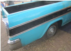 In viewing the Cameo the day before the auction we could see it had been left outside (probably beside the closed dealership) about 5 years before placed inside. It was nice but certainly not perfect for the 1.3 odometer miles. The chrome in places was now showing some dull weak areas. Bed boards were beginning to raise and separate near the front bed panel. Signs of standing rain water in the bed (maybe with long periods of tree leaves) had certainly taken its toll. The two top bedside chrome plated strips showed pitting from outside storage.