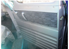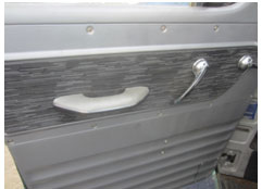 - The same material placed on the seats also covers the door panels.