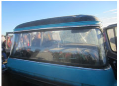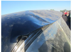Unfortunately when inside the building something very heavy had dropped on its top many years ago with major damage that also broke the windshield. Another small dent was on the right rear. How could that happen?