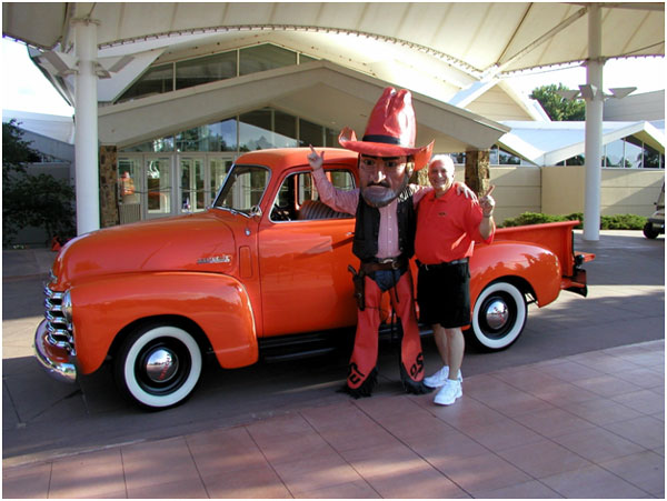 This beautiful pickup couldn’t be more ready for an across the country trip or just being a part of OSU’s many sports events. Our feature photo shows the college mascot, Pistol Pete beside this pick up with Tad. How great Tad has spent so much time and money to remain connected to the student body and their sport activities.
