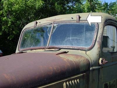 No windshield crank-out assembly! The military did not want this assembly breaking in winter and staying open. No heater. Look at the pull down bracket that holds the windshield frame closed. A thumb screw holds the frame open in hot weather much like a 1934-36 Chevrolet truck or a Model A Ford. See Photos