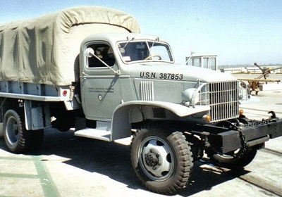 The owner and restorer is Herman Pfauter of Santa Barbara, California. He is a member of the Military Vehicle Preservation Association, a world-wide club of military vehicle collectors and restorers. Headquartered in Independence, Missouri. He has eleven WWII vehicles in his collection. This feature truck is one of the fully restored vehicles in his collection. After purchasing it in the Los Angles area Herman discovered that it needed a lot of work. Because this US Navy 1 ½ ton is very rare, the decision was finally made to make it a new truck and spend the time and money required to make at close to as it was in WWII. It needed so much work! Fortunately Herman found a good friend that offered his assistance. The two of them worked together for almost 3 years to get the finished product. Most parts were removed to expose the complete frame. Then it was re-assembled piece by piece. It was two men assembling it like a big model kit. When finally completed it was so nice! Only a few hidden modifications made it better for performance and safety.