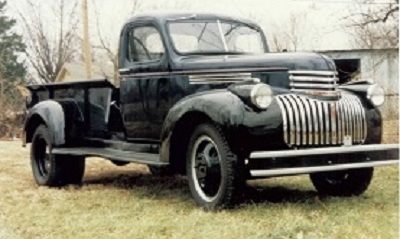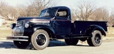 WOW! It was a real factory built pickup but was so oversized it looked gangly. It was pure 1946-early 1947 because of its updated front bumper, however the Chevrolet Salesman Data Book for that year did not recognize this model. Strange! We looked back to the 1941 data book and there it was. A 134 ½ wheel base pickup with a 108” long bed, on a 1 ½ ton chassis.