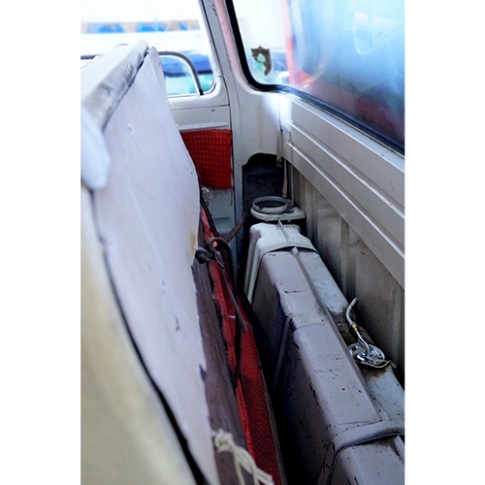 One modern extra was added by one of the first two owners. Note the small speaker box at the top of the Topper front. This would imply that a second person could nap on the bed spring bed while the driver continued on the road.