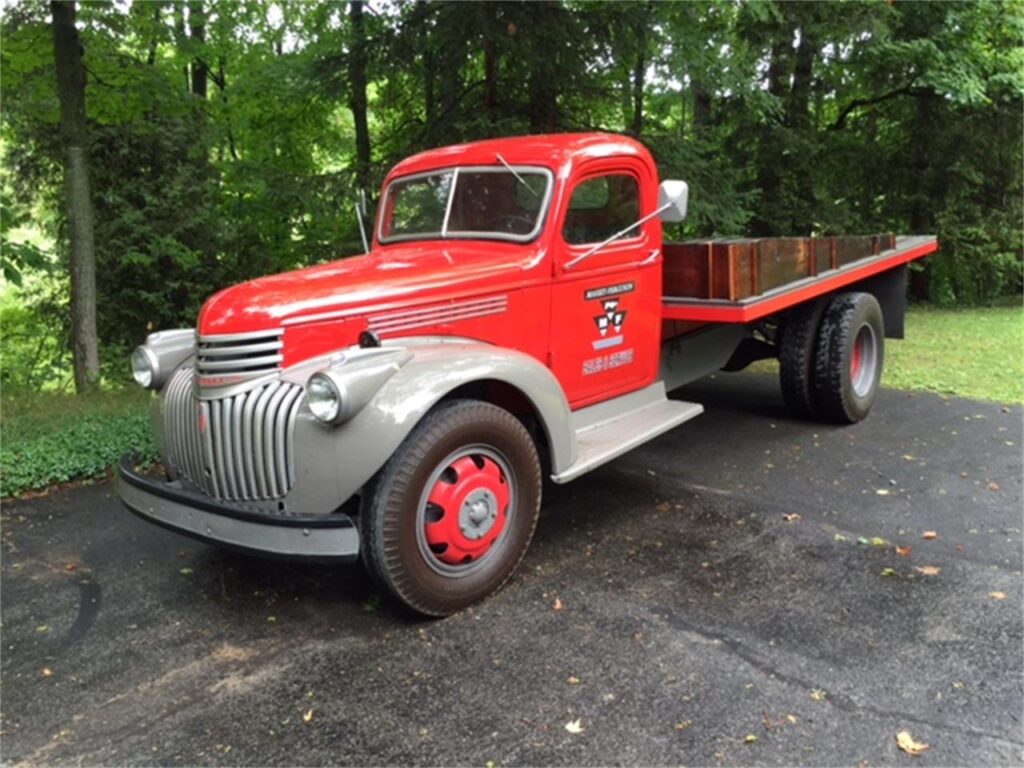When you are buying a 1941-46 front fender and you see it cut-in at the front: as in this photo, it is correct for the 1 ½ and 2 ton trucks! The factory cut-ins allows the big truck 20 inch tires to turn without touching the fenders.