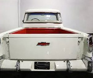 The complete bed with spare tire assembly has absolutely no changes except for the tailgate emblem and later 1957-1958 Cameo side trim.