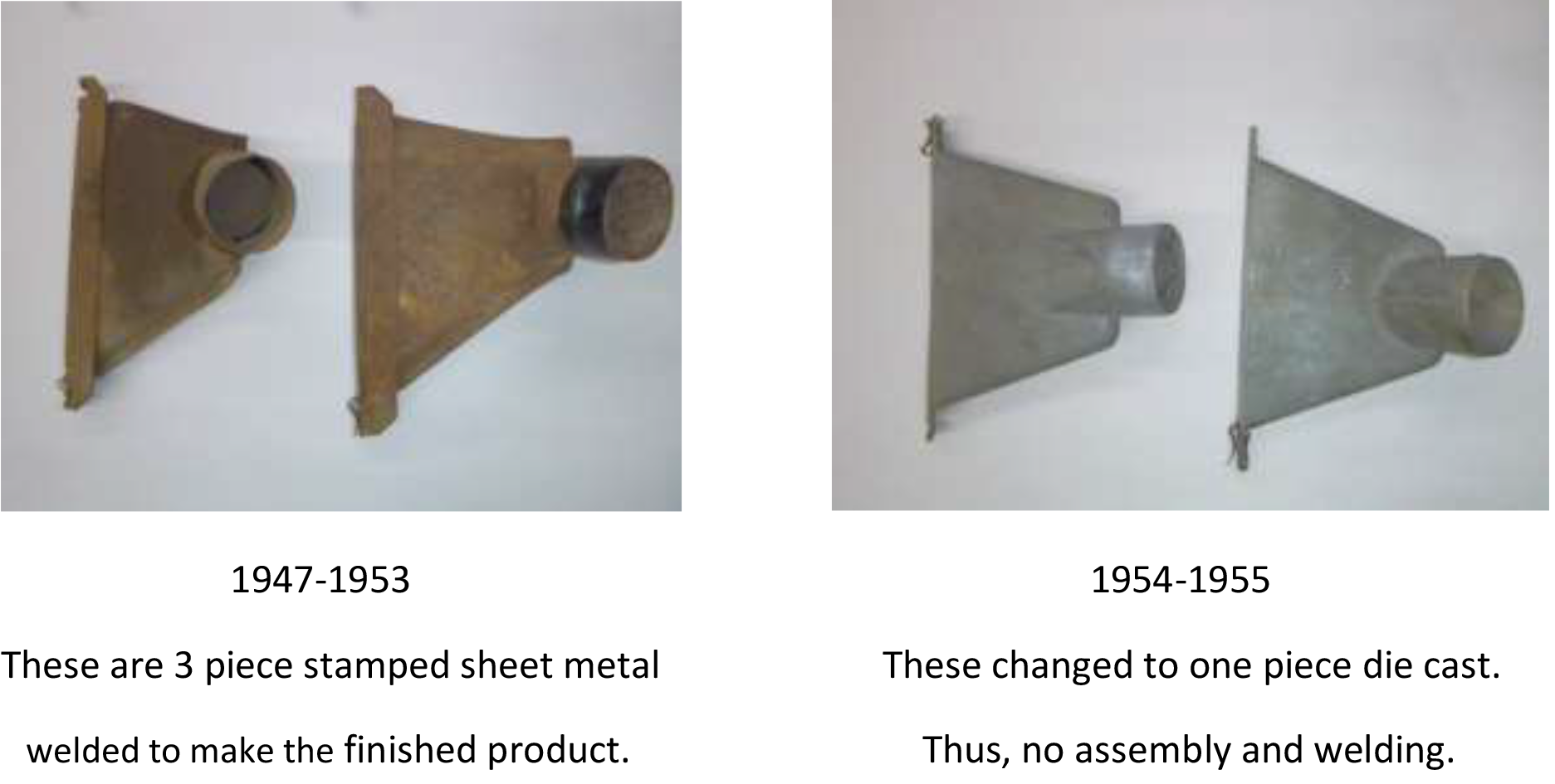 Both pre-boxed heater designs included a pair of defroster ducts. Both were connected to the body of the main heater box by air transfer flexible hoses.