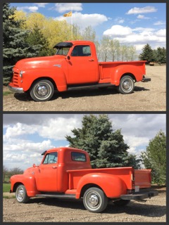 After graduation he found a good paying job in Calgary, 60 miles away. Disposable income allowed him to get serious in his 1950 GMC upgrading. Now it has a very nice appearance, much like 70 years ago. Exception: Lift the hood and there is a Chevy small block V-8 engine.