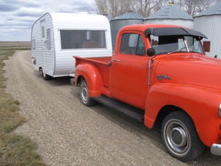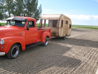 Our regular readers of the Feature Truck of the Month Series know we try to find early GM trucks that are just a little different for an article. Our choice this month certainly fills these qualifications. A 1953 GMC ½ ton owned and totally restored by Allan Fisher of Vulcan, Alberta, Canada. Certainly a rare GMC 1/2 ton, plus it often pulls one of the few remaining 1956 Mercury 12 foot camper trailers in existence. Yes, also a “ground up” restoration by Allan. What an attention getter wherever this pair is seen!