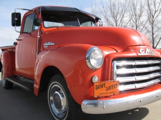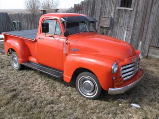 1953 GMC a real survivor: Some History This ‘53 GMC was sold in a small town in southern Alberta which had two automotive dealers. One a GMC dealer and the other a Ford dealer. In a short few years this GM was traded in to the Ford dealer. The Ford dealer also had a J.I. Case dealership for farm equipment. The good traded in GMC was painted Case orange (as it is today) and was used as a sales truck for the Case dealership in the late ‘50s. When the salesman who used the truck retired he got the GMC. It then went to his farming relatives where it hauled many 50 lb. bags of fertilizer for spring seeding. When seeding was finished back inside to keep the leftover fertilizer dry until next spring. When bags were not used anymore the old truck just sat inside forgotten. It was luck to be talking trucks over coffee when the owner of the GMC said he had a truck that was taking up space and should be gone to a new owner. I went to look at it. It was hard to see at the back of a building in the dark. But looked not bad from what I could see so made a deal and got it home only 30 miles. I put it in a building in my yard at the back in the dark and left it for another day. Five years later, time to get the old GMC out and start a cleanup. Out into the light with a careful look at it no rust any place these old trucks usually rust. Paint good for its age. “Orange” with little body damage. A good cleaning with the mouse nests gone it is a much better truck than I first thought. Now it was time to make a plan to save this good old truck. It is too nice original to hot rod but that would get it back on the road and could be driven but the cost is not cheap. A real good start for a back to very original truck but only good for driving in the summer and with faster highways it would not get driven much. Last and best I think for me is a driver that can be used for fun and light work. Upgraded for safety and faster roads at a reasonable cost so work began. First a better 6 cylinder pressure oiled engine. (GM 235 or 261) I found a GM 261 six that was to be in good shape and it really was so I cleaned it up and it bolts in. A better shifting transmission Saginaw four speed seemed best. It bolts to the engine. Rear diff. is a ten bolt GM out of a mid-size car (right width) drive shaft fits too. Steering was good put in manual disk brakes on front, (all parts in a kit) GM drums rear. Wheels changed to five bolt 15” with radial tires Changed to all 12v for better lights etc. All this upgrade were done in my backyard shop and all just bolt on.