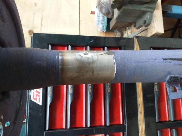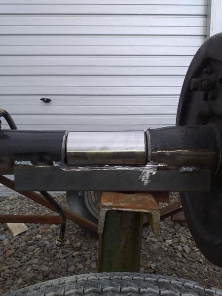 Photo 3 shows the new steel in place, I got some thick walled steam pipe and had it turned down close to the size I needed, then welded it in place.