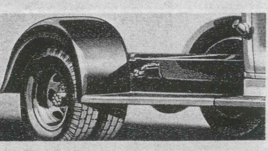 - Narrow wheel width and very low body mounting requires narrow “tubs” on inner bedsides.