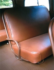 The seat upholstery is the 'real thing'. It was carefully removed from the cushions, dyed, given new padding, and then put back in its original place. The seats now look as though they are just out of the factory!