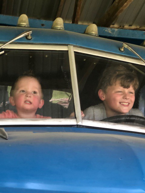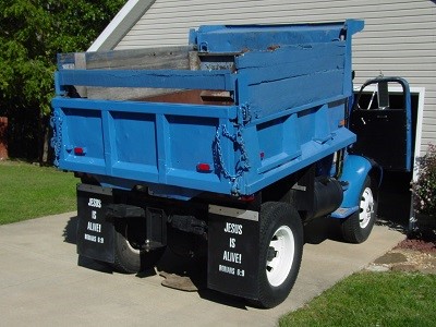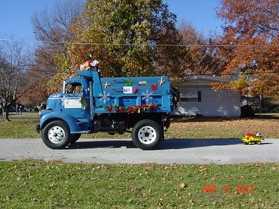 While the children were young, they would ride on the dump bed extension over the cab during parades with decorations of gifts and Santa and Mrs. Clause likenesses in Christmas local parades.