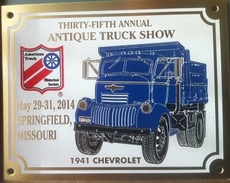 The COE appeared on the official poster announcing the ATHS Convention so it received much press coverage over the country. The small brass souvenir plate, given to all show entries, is made from Burk’s COE. It was found on a few very large banners used to advertise the convention in earlier local shows. The compliment of all was it being on the cover of the ATHS Showtime Magazine sent to club members around the world. It shows data and photos of all convention truck participants. See photos.
