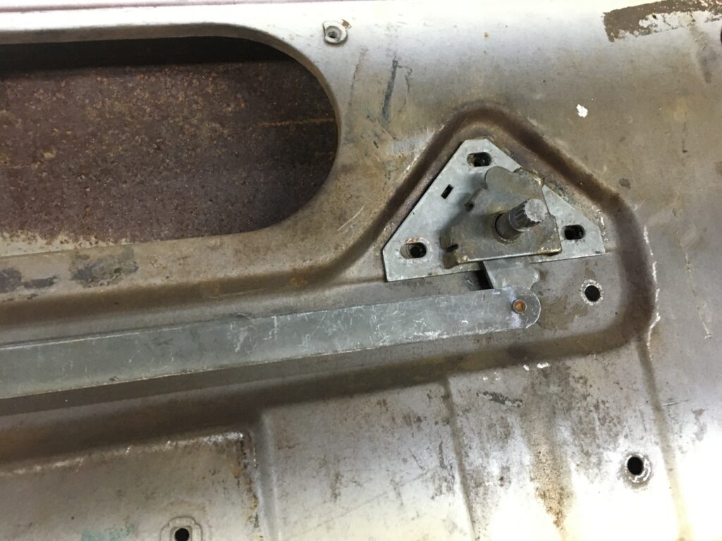 If you install a 1949-55 remote there is a problem on all 1947-55 doors. The long connecting strap does not fit into the inner door gutter made for the remote, it goes across it. In addition, it now rubs the underside of the non-metal appearance door panel. This is hidden from sight unless it wears through this cardboard.