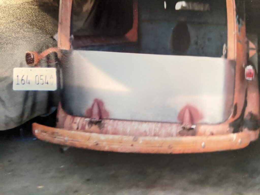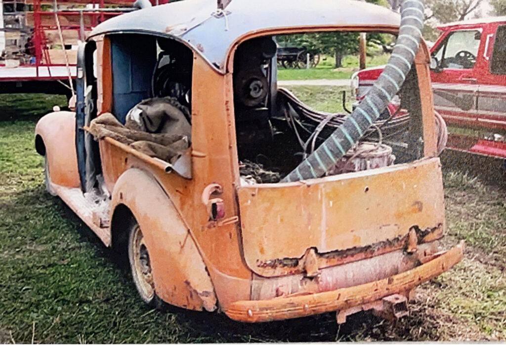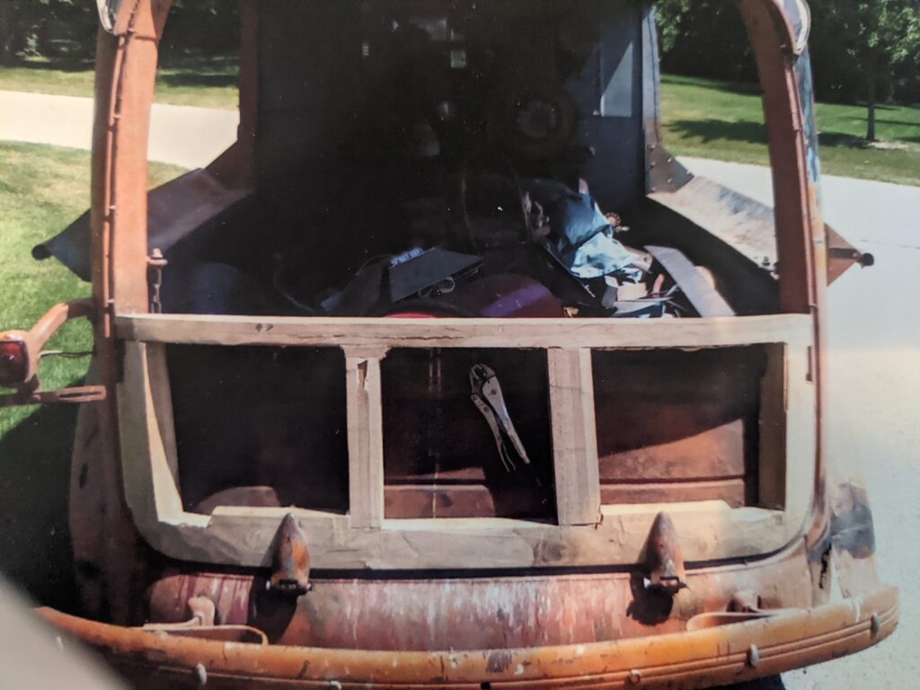 The day Dennis got it home! Note the deteriorated non-restorable tailgate. Two photos of the ground-up rebuild is in this article! He could get a job at any carpentry shop.
