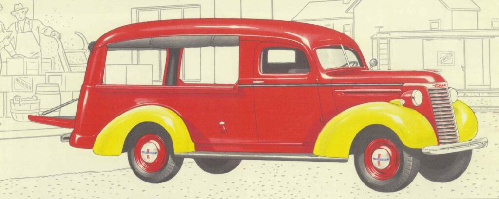 On the Panel Truck, this gave even more room for carrying longer merchandise such as lumber and all was carried out with bad weather.