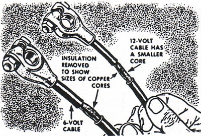 Six volt starters require twice the electrical flow to operate properly. Don't blame your six volt system for slow unacceptable starter motor speed! Many restorers go to the expense of changing their 6 volt system to 12 volts. They feel their original system was inferior and believe what they did was necessary. The problem could have been corrected with just adding the three proper cables.