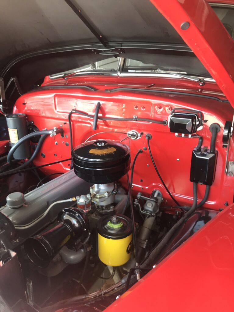 There is a slight change not noticeable to most. He exchanged the pickup’s very tired 216 engine with a 1956 235 cubic inch six cylinder. They fit much the same as the 216 but the 235 is high pressure with much more horsepower.