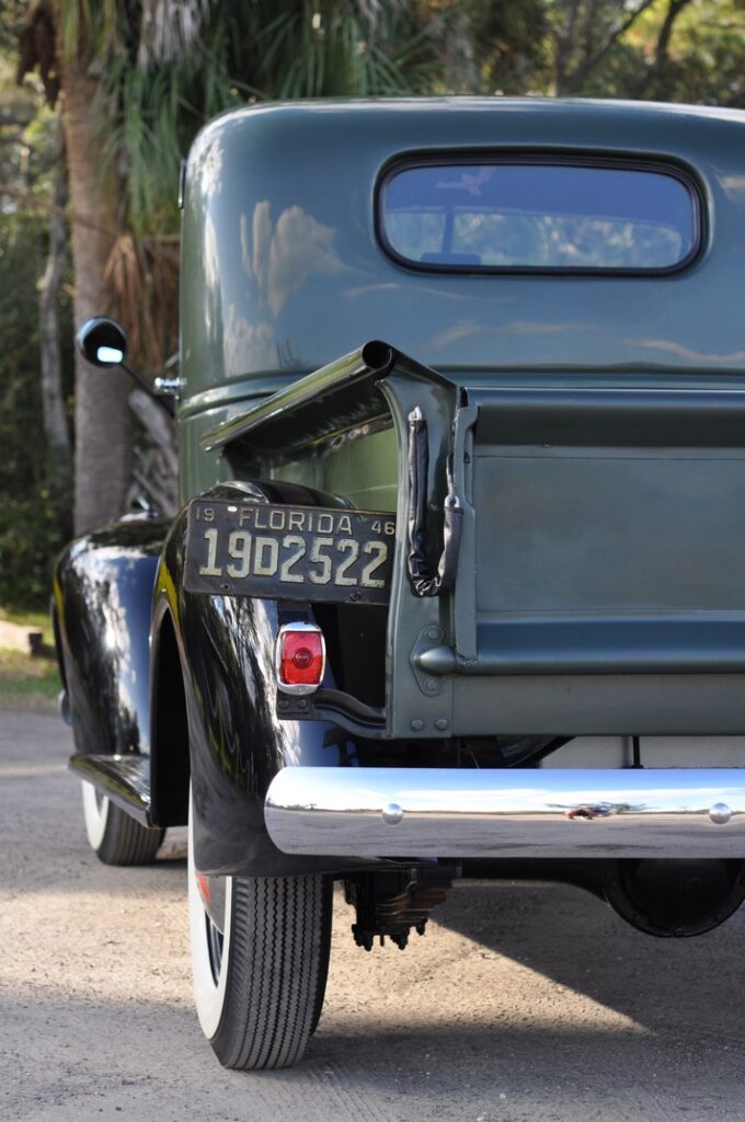 Our truck this month is one of these! Todd Jones of Jacksonville, Florida owns this beautiful example of such a low mileage almost untouched pickup Never actually restored, just given some “touch-ups!” It’s the real deal. Buyers waited in line to own a new vehicle after the “Big War”. We might say this is a part of our history!